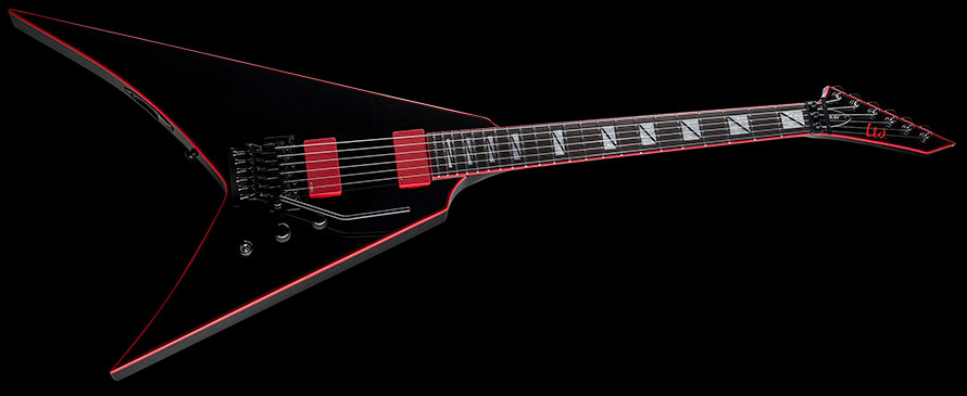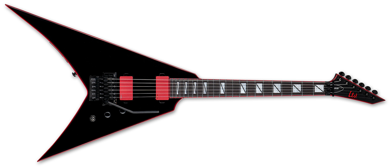 Gary Holt, do Slayer e do Exodus, é uma lenda no mundo do thrash metal. Sua LTD Signature Series GH-SV é baseada no estilo de corpo SV e foi projetada pelo próprio Gary para suportar a execução mais agressiva, rápida e potente que você possa ter. Seu timbre é impulsionado por um par de captadores ativos EMG com acabamento vermelho: o EMG 89R no braço, com um divisor de bobina controlado por um botão de volume, e o EMG 81 na ponte. A GH-SV oferece um design de braço set-thru, com seu braço em mogno que se aprofunda na cavidade do corpo em mogno, para proporcionar excelente estabilidade e acesso suave às notas mais agudas em sua escala em ébano. O visual agressivo desse instrumento é acentuado pelo binding vermelho no corpo, no braço e no headstock, contrastando com o acabamento preto brilhante. A GH-SV oferece um tremolo Floyd Rose e tarraxas Grover.